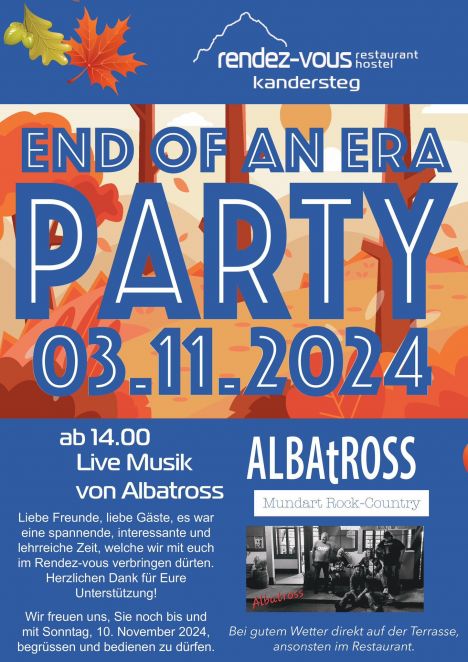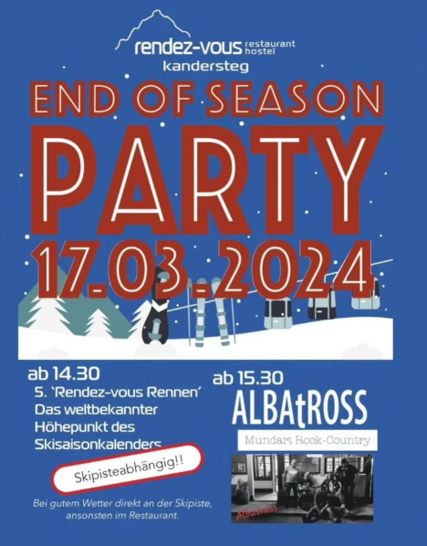 Im gemütlichen und familienfreundlichen Restaurant an der Talstation Gondelbahn Oeschinensee durften wir anlässlich der "End Of Season Party" spielen. Mit viel Wetterglück durften wir die Gäste unterhalten.
